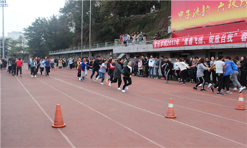 2017年3月25日下午13:30,内江师范学院音乐学院以“青春飞扬,绽放自我”为主题的春季运动会在西区田径场拉开帷幕。参加本次春季运动会的有音乐学院2015级和2016级的同学和音乐学院全体老师,出席今天运动会开幕式的有音乐学院党总书记陈敏,音乐学院辅导员向文静、杨平老师以及学生相关成员。