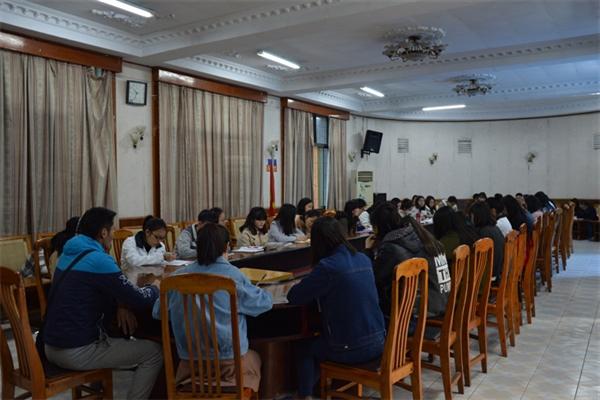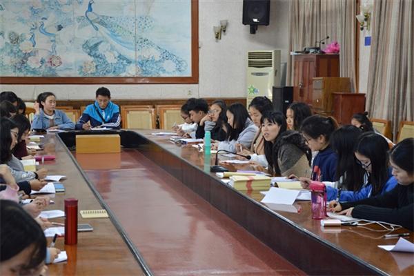 为深入学习全国高校思想政治工作会议和习近平总书记重要讲话精神,深入推进共青团改革,大力推进从严治团,切实增强团员的先进性和光荣感,以良好风貌,迎接党的十九大胜利召开。我院于3月23日中午,在中心议室召开了“一学一做”动员大会。团总支书记谭思师,团总支副书记赵婷,团总支各部门成员,各班团支书参加了此次动员大会。