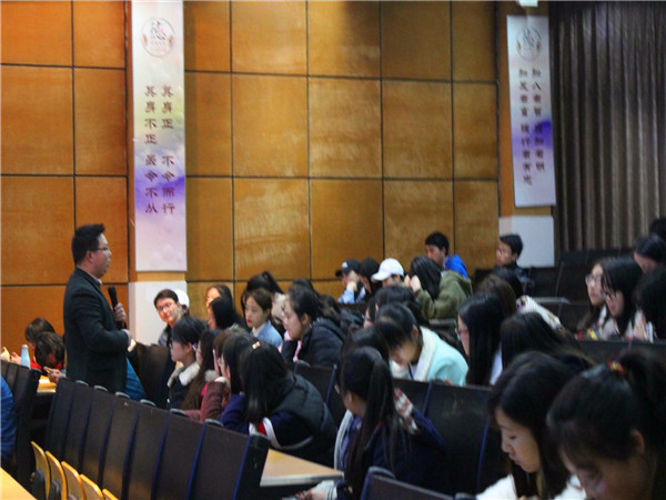 讲座开始由黄老师为同学们简单的讲述了考研的方向和优势,黄老师以幽默的语言方式使现场的气氛变得十分活跃,同学们都有很高的兴致。后由杨老师为同学们进一步的讲解,杨老师开始先了解了有考研意向的同学,在了解基本的情况后,杨教授便开始进入主题,他首先向我们介绍了考研的就业前景,讲述了考研的基本意义,以男女同学的不同点指导同学们的考研方向,并且举了许多的例子,使同学们对考研的认知度进一步的提高。然后杨老师在同学们考研时在择校选专业方面,考研复习时间利用等方面都提出了很好的建议。还鼓励同学们制定自己的小目标,有目标才会有动力。在场学生都听得十分认真,许多同学都将杨老师给我们的建议一一记下。本次讲座得到了同学们的热烈欢迎,为许多准备考研的同学提供了很大的帮助。