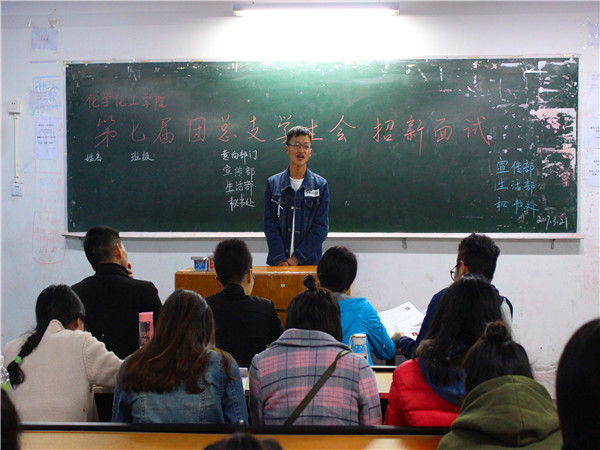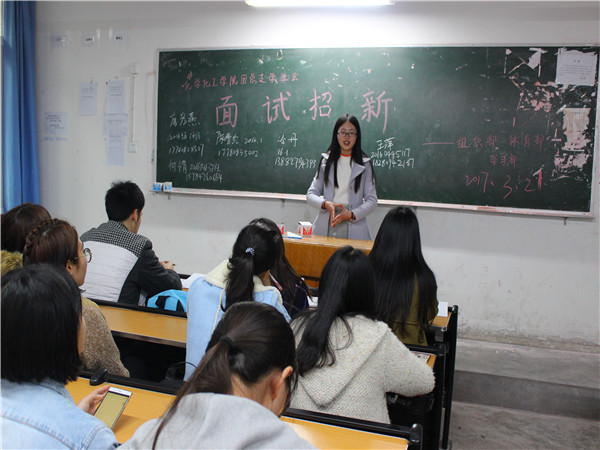 3月21日12:30我院团总支学生会在一教106、108、204进行面试招新活动,担任此次面试的评分人员有团总支副书记张青、学生会主席谢贤良、副主席钟文莉、各部门部长以及部门干事。