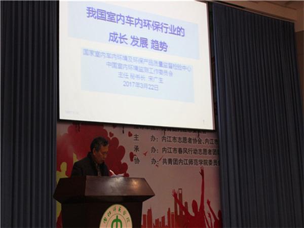会议伊始,雷院长发表讲话并介绍主讲人宋广生先生。随后,宋先生首先介绍了关于我国目前主要的室内环境,车内环境问题,并根据相关内容进行了一系列的扩展,并有望在我院建立一个关于车内、室内环境监测的实验室。然后介绍了他们一行人为室内车内环境监测所所做出的努力,为汽车产业,塑料产业的知识演讲,从而让生产人认识到室内,车内环境问题的源头。其中,他特别提到了我国对环境问题的重视。为解决此问题我国正在推动空气净化器、新风机等净化室内、车内空气产业的发展,宋先生认为这是一个极具发展前景的方向,大学生们可以考虑和选择今后的研究方向。最后,宋先生鼓励广大青年大学生积极投入到环境监测和保护研究工作中,为我们也为我们下一代提供健康的生活环境而努力。