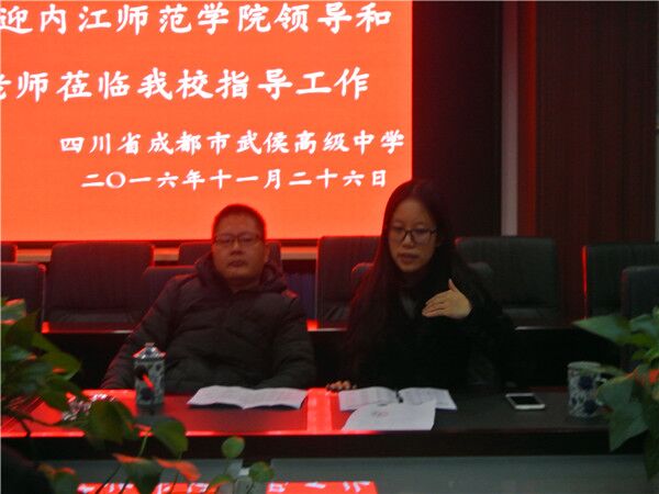 2016年11月26日,为深入了解我院学生的具体实习情况以及收集用人单位对高校化学专业人才培养的建议,我院院长雷光东、党总支书记周业友、副院长朱俊以及各班主任老师前往我校实习基地——四川省成都市武侯高级中学进行考察。