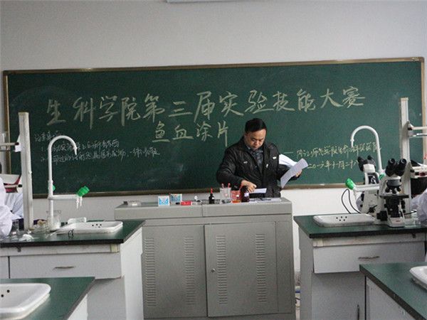为更好地规范实验操作,提高学生的实验技能,在学院内部形成比、学、赶、超的良好氛围。2016年11月28日下午两点,我院于八教411,416和514三间实验室举行了生命科学学院第三届实验技能大赛,由我院六名专业老师担任评委,大赛主要包括叶脉书签、叶片横切比赛、鱼血涂片三个项目,来自我院各班级共计120余名同学参加。
