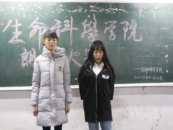 诗朗诵比赛也同时在一教103教室进行,本次比赛的评委由生科院团总支学生会部分学生干部担任,最后将在众多的参赛者中挑选一名同学代表生科学院去参加由我校语委办举办于12月9日的决赛。比赛主题主要在于表现天府之国悠扬的历史、深厚的底蕴和独特的魅力,培养学子热爱四川、建设四川的美好情操,为全面建成小康社会,谱写“中国梦”四川篇章凝聚强大的力量。朗诵时,他们言辞慷慨激昂,其中四人合诵《将近酒》,二人合诵《四川,美的像花一样》和女生独诵《我们四川人》就与主题相得益彰。