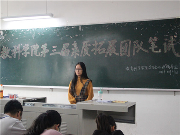 本次笔试,不仅考查了同学们对素质拓展团队的认识,同时也考查了同学们的应变能力和创新能力,为教科学院更好地建设素质拓展团队打下了基础。