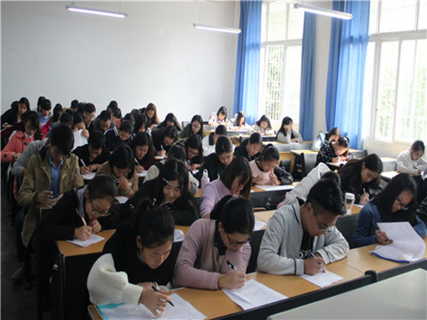 心理辅导站本着公平、公正的原则面向全院开展了本次笔试活动,为热爱素质拓展团队的同学提供了一个充分展示自我的平台。笔试试卷分选择题、填空题和解答题三部分,旨在从多角度、多方面考核参试人员。12点30分,一切准备就绪后,笔试开始。同学们拿到试卷,便全身心投入到对考题的分析当中,手扶额头,认真思索,接着便提起笔在试卷上敲定答案。考场内纪律良好,大家都将对素质拓展团队的热情融入到试卷之中。13点30分,不少考生已陆续递交了考卷,信心满满地走出考场。