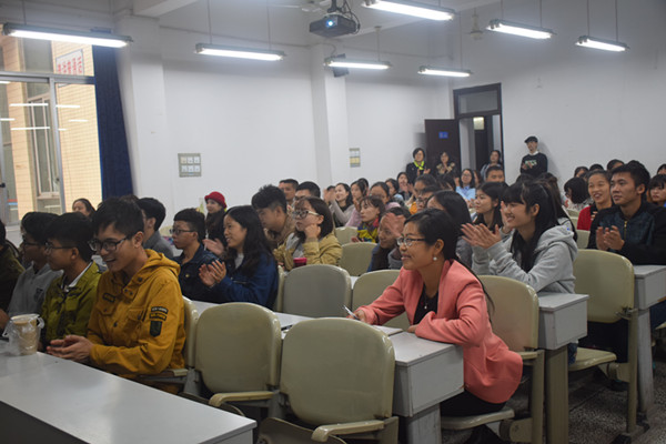 14点20分,在大家满满的期待下,讲座分别在五教北103和104开始了。首先,教科学院院长陈理宣对前来的校友一一进行了介绍,表达了对前来的校友的热烈欢迎。紧接着,座谈会的愉快的气氛中开始了。现在身为中学教师的何陈宁学长,在103教室与小学教育和学前教育专业的师弟师妹进行对口交流。在讲座期间,何陈宁学长跟大家分享了这么多年来他的心路历程。他将自己多年的教师经历一一讲给师弟师妹们,他告诉大家:以后要是成为了一名教师,一定要顶住压力,精心备课,全力教学;要把握机会,主动与他人交流;还与大家交流了与学生的相处之道,希望大家以后能成为优秀的人民教师。学长讲的精彩,师弟师妹们也听得津津有味,不时就会传来阵阵热烈掌声。最后,同学们纷纷提出自己的问题,何陈宁学长也一一耐心的解答。