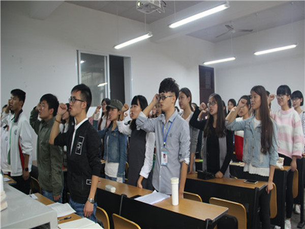 仪式中,教科学院团总支学生会实践部部长王雪阳着重说明了志愿者在实践活动中的安全问题,强调作为一名志愿者应保持初心,坚持志愿者精神,在志愿活动中体现出当代大学生蓬勃向上的精神风貌。新一届志愿者代表何兴旺发言,表达了新一届志愿者在帮助他人时将全力以赴,负责到底,志愿服务他人的决心。最后,志愿者全体起立,举起右手庄严宣誓:“我志愿成为一名志愿者。我承诺:尽己所为……”志愿者慷慨有力的宣誓回荡在教室每个角落,展示出志愿者们服务奉献他人的决心。
