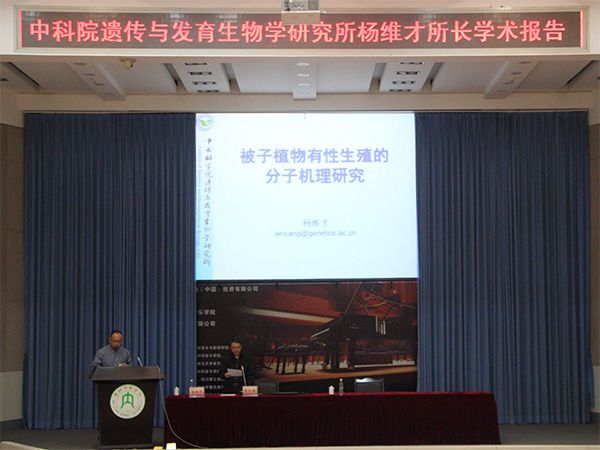 2016年10月24日星期一下午2:20,生命科学学院邀请中国科学院遗传与发育生物学研究所所长杨维才教授来院讲学,杨教授以“被子植物有性生殖的分子机理研究”为主题,在第一学术报告厅为生科院的同学带来了一场精彩前沿的学术讲座。本次讲座由我院副院长张志勇博士主持,学工办主任杨荣金和14、15级各班学生一同聆听了本次讲座。