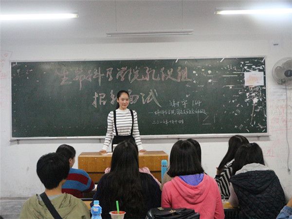 为了在新的学期向礼仪队输送新鲜血液,10月14日12:30,我院在一教106举办了礼仪队招新面试,让更多的同学来展示自己,同时让同学们的日常生活更丰富,本次来面试的都是对礼仪很感兴趣的同学。