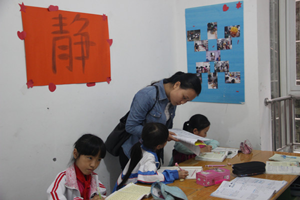 课堂开始前,小朋友们或独自或在家长的陪伴下早早来到社区教室。当他们见到前去辅导的志愿者时都十分高兴,嘴里说着“姐姐又来了”,一个个脸上都挂着灿烂的笑容。社区教室里经过社区工作人员的精心布置,为小朋友们营造了良好的学习环境。一到教室,小朋友们就立刻拿出自己的课本,自觉开始写作业。期间,志愿者们在教室里轻声走动,耐心仔细回答小朋友的问题。课间休息时,志愿者和小朋友们一起说说笑笑,玩游戏,现场气氛非常融洽、愉快。