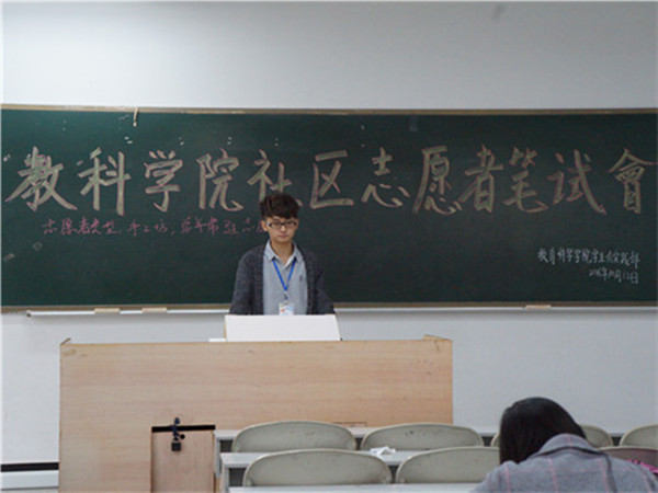 随着教科学院第十四届团总支学生会干事招新工作的结束,各部门的学生工作也陆续展开。2016年10月12日,由教科学院实践部主办的社区志愿者招新笔试会顺利展开。本次招募的志愿者主要有手工坊、美术坊、四点半课堂以及社区学年常驻志愿者四种类型,笔试分别于三教106教室、五教北401教室进行。