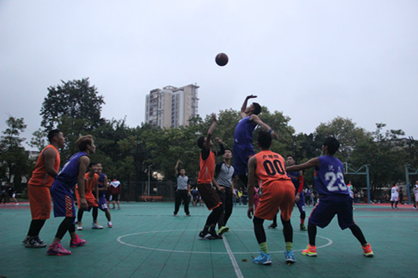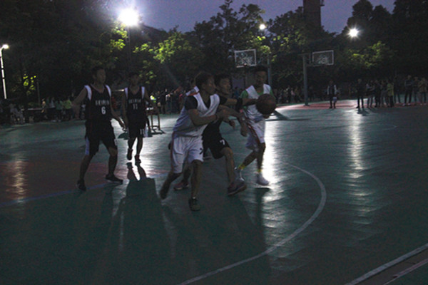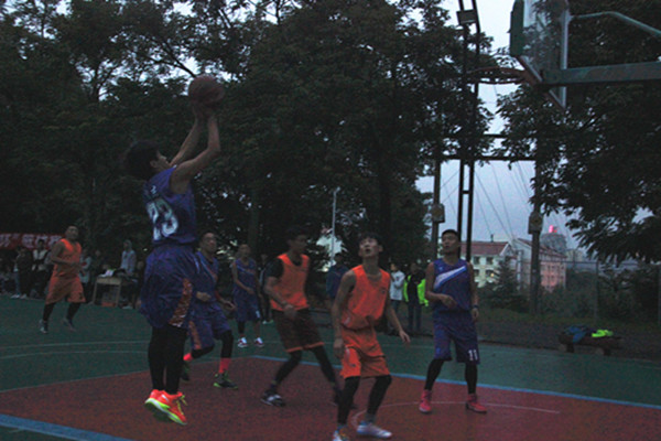 18点10分,在裁判的一声哨下,只见两个身影纵身起跳,球从空中落下,比赛火热开始。大家都全力以赴,不分上下,特别是15级6班的一队与二队之争,势均力敌。你进一个球,我进一个球,比分交替上升。到了比赛后半程,一队11号从对手手中抢过球,一个迅猛转身、过人、传球,最后纵身一跃投篮,瞬间打出一个完美的三分球,赢得场边的热烈欢呼声。一队保持着这样的冲劲奋力追赶,最后将比分定格在38:32,艰难地拿下了这场比赛。2016级同学也在比赛中卯足了全力,有的队员虽然不太熟悉篮球,但还是努力配合队友,打好每一个球。各班的同学组成的啦啦队也非常给力,为在球场上挥洒汗水的同学们加油打气,现场气氛热烈无比。