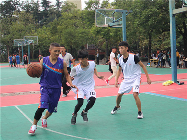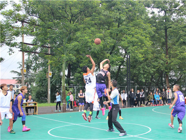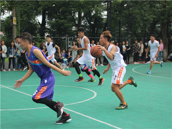 本次比赛男篮与女篮同时进行,男子分别是16级6班对阵15级6班一队以及16级2班对阵大二男子联队,女子分别是16级1班对阵16级4班以及15级6班对阵15级3班。球员们简单热身之后,12点30分,比赛正式开始。哨声一响,两位球员纵身一跃,拉开了本场篮球赛的序幕。球员们肌肉紧绷、神情严肃,时刻预防着对方球员的进攻,同时观察队友,配合队友运球、传球、投球……“砰!”的一声,只见篮球在篮筐上旋转一圈后,最终掉了进去。比赛就这样激烈进行着,观众们在一旁也会他们捏了一把汗,不知道下一颗球哪方将会得分。与此同时,旁边的女篮也是精彩不已。16级的女同学们虽然没有精湛的球技,但她们竭尽所能,配合队友,传球、防守,一丝不苟。半场下来,体力已经消耗了大半,但她们依然拼尽全力,坚持到底。场外的观众团结一心,不断地为场上的球员加油鼓劲儿,加油呐喊声响彻整个球场。