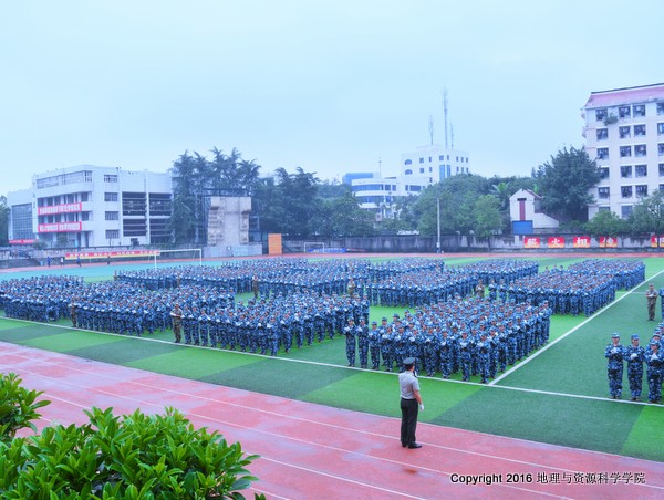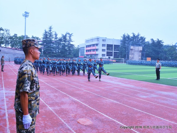 我校2016级新生军训汇报表演暨总结表彰大会于9月20日下午在田径场隆重举行。我院200多名新生与全校4000多名新生一起进行了汇报表演,接受领导和老师们的检阅。我院院长袁天凤,党总支副书记龚彬,辅导员罗利、刘群、胡翔老师,及2016级班主任刘红君、陈鹏宇老师出席本次活动。