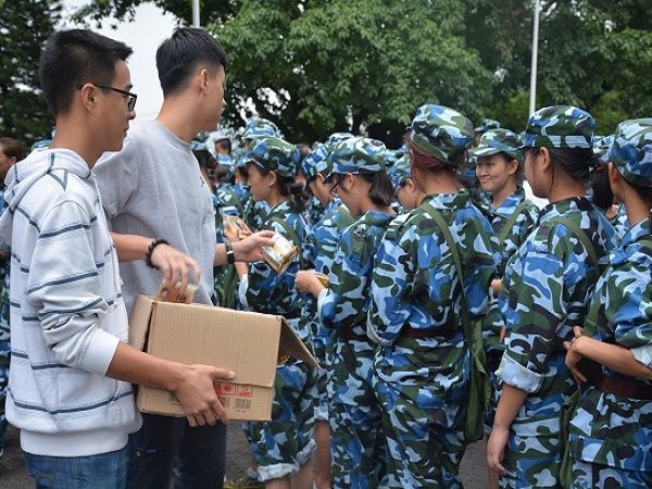 在现场,老师们将一个个饱含着爱心与祝福的月饼送到新生手中,接到月饼的那一刻,同学脸上洋溢着喜悦的笑容,真切感受到了学院的温暖和关怀。身着迷彩服的一名网络工程专业新生面带笑容说道:“月饼虽然不是很贵重,但学院给予的这份心意却是满满的,让大家感受到了家的温暖”。“这是我第一次在异地过中秋节并收到礼物,学院太友爱了!”捧着香甜的月饼,听着学姐们亲切的话语,我院计算机科学与技术一名新生难捺内心的喜悦,幸福的泪水夺眶而出。9月15日下午,我院集中采购的400余份月饼免费分发到正在军训的新生手中,并送去了节日的祝福。