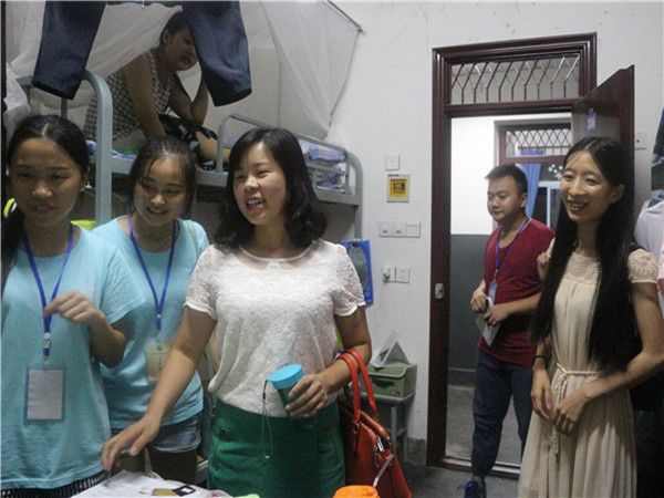 李清敏老师等一行人逐一走访寝室,与新生进行了亲切的交流。耐心细致的询问同学们对新学校的感受和适应情况,并嘱咐大家在军训来临之际要学会照顾好自己,搞好与室友、同学之间的关系,共同维护寝室和谐美好。着重强调了个人财产安全问题,建议大家室友之间要互相提醒,遇到困难要及时向老师、同学寻求帮助,防止诈骗、恶意推销等情况,合理使用电,禁止在寝室使用大功率电器。