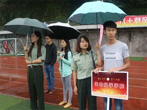 今年的雨水似乎比去年的九月来得更早也更快一点,气温也比去年更低一些,还未等及分配连队,足球场上同学们的帽檐、衣襟便聚集了细密的水珠,脚步踩在塑料草坪上都能感觉到雨水的厚度。或许是雨水给了他们力量,又或许是凉爽的天气带给他们别样的安慰,他们并没有在雨中皱眉或抱怨,而是以一种“君子坦荡荡”的平静态度面对这大自然的风雨磨砺。而同学们之间也表现出了浓厚的“战友情”,虽然他们来自四海八方,语言文化存在许多差异,可每当身边的人需要帮助时,他们总是在第一时间伸出援手,或是一张纸巾,或是在即将晕倒时一双温暖的手掌,或是一句在将要放弃时恰到好处的安慰……