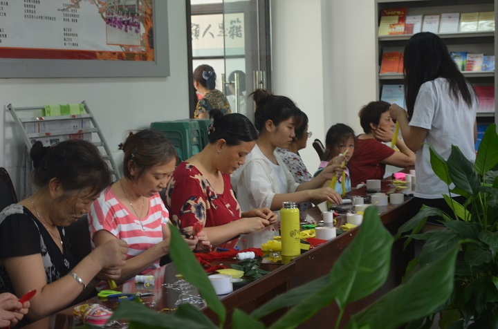 7月20号下午,内江师范学院晨曦党员志愿者服务队携手临江小区社工站开展了“丝网花”手工制作活动。