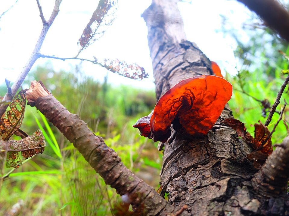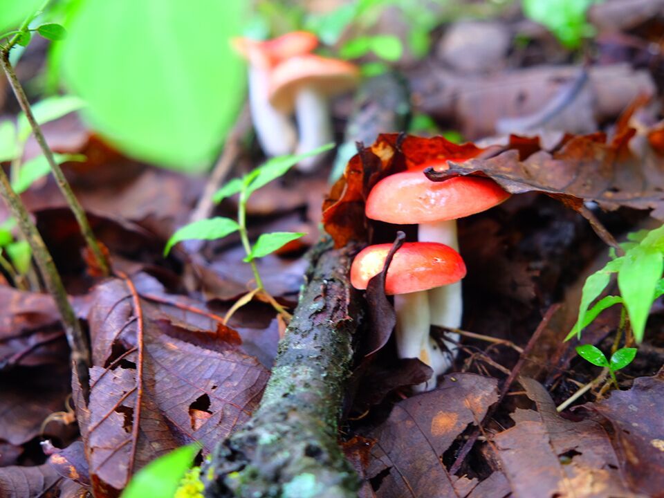 通往山顶的小路是非常崎岖的,尤其是在树林里,菌类虽然很多,也有许多长满青苔的石头却很滑,我们便扶着那些树木一步一步往上爬。一路上我们见到了许多新奇的菌类,也听叔叔讲了许多关于它们的用途,我们了解到有的菌类虽然长得很漂亮,却是有毒的,没多大用处,食用反而有害,而有些看着不起眼的蘑菇,却有很大的食用药用价值。