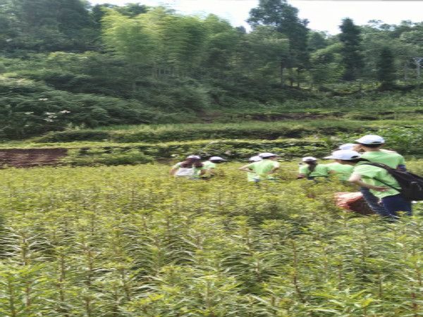 7月12号早上8点,队员们带着激情与兴奋赶往下一个目的地——古家赶黄草种植基地。为了深入了解当地地形,大家决定步行前往,尽管头顶毒辣的太阳,脚踩火热的马路。但这无法阻止队员们继续探寻赶黄草的脚步。下午11点半左右,队员们到达古家村,中午有的成员由于日晒导致身体不适,但他们还是选择继续坚持,跟着大部队去古家赶黄草种植基地学习。