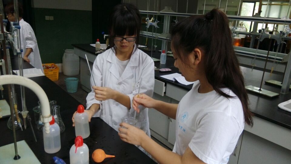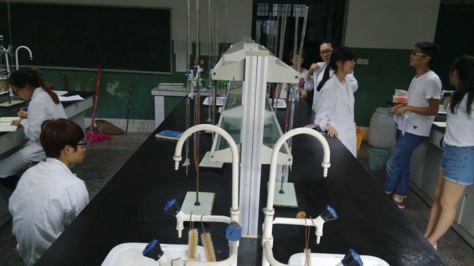 下午2:30,晴空万里,艳阳高照。队友一行来到化学分析实验室,我们今天下午的任务是测定水的硬度(即水中钙镁离子含量是否达标)。原以为简单的实验,当真正全靠我们自己时,却显得有些寸步难行。在队里大二师姐们的仔细探讨下,我们一步一个脚印,最终还是摸索出了实验的基本原理,再加上大三师兄的指导,我们通过自己配置试剂,找药品,做滴定实验,观察实验结果,途中经历过失败,但队员们都抱着永不言弃的态度,最终成功完成井水硬度的测定实验。队友唏嘘不已,成功的确来之不易啊!