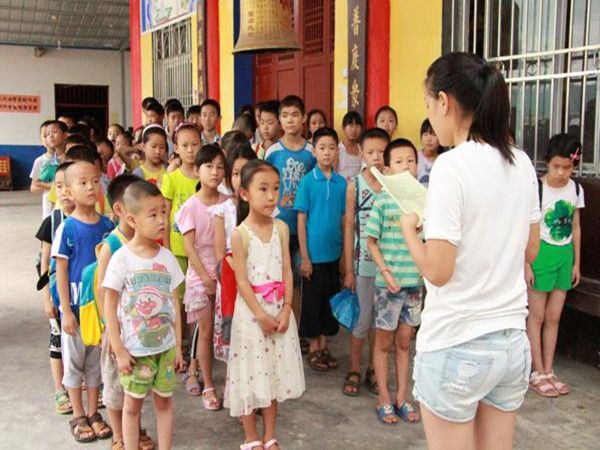 第二节课才正常授课。上课铃响后,4-6年级的学生跟随教他们舞蹈的队友来到室外开始了别开生面的舞蹈课。在授课前,先按高低顺序整队,整队完毕后,我们的队友先跟着音乐秀了一段舞蹈,然后再把刚才的动作分解成几个慢拍动作教给他们。刚开始,有的同学还比较腼腆,不敢大胆地表现自己,但是,随着队友的悉心指导和对周围同学的熟悉,他们渐渐放开了自己,可以随着音乐舞动。在第三节课开始前,1-3年级的同学便迫不及待地想出去,相较于高年级的同学,低年级的同学就活跃了许多,他们跟着音乐看着老师就能自己舞蹈起来。在整个舞蹈教学中,同学们都认真听讲,开心地在旋律中找到自己的节拍。
