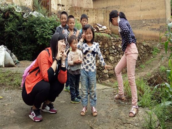 志愿者前往火干村途中