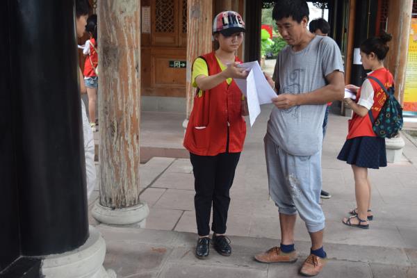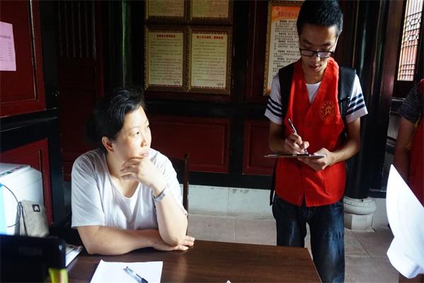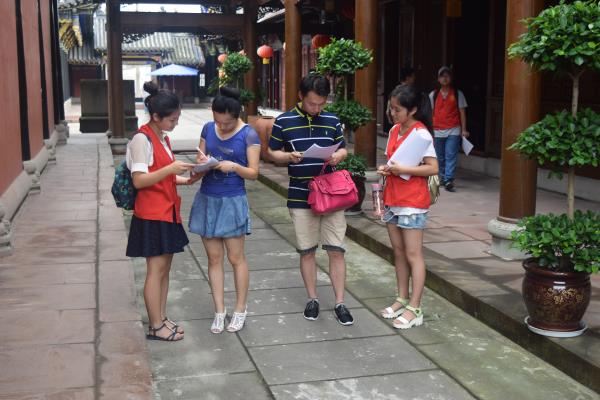 参观完后,队员们紧接着便投入到了今天的调研工作中。此时已经临近上午9:00,不时便有香客前来礼佛参禅,烧香还愿。同时,也有不少的游客前来参观游玩。于是,问卷组的队员们便上前表明了自己的来意,得到了游客们的大力支持;随后,访谈组的队员们也找到了寺庙的负责人,与其进行了详细的交流并得到了许多宝贵的意见。最终,队伍顺利完成了对圣水寺的调研任务。