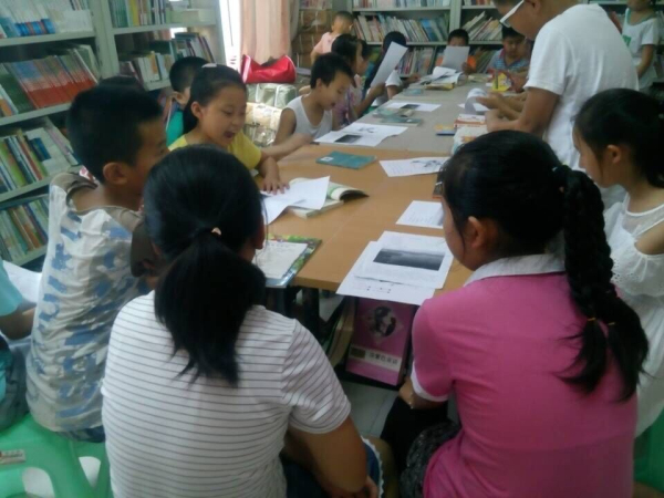 早上九点活动正式开始,小一点的孩子在文化站二楼朗读着《弟子规》,两位志愿者生动活泼地讲《弟子规》的故事,并让小朋友上台表演,记得一个叫坤坤的小男孩,灵活多变,将故事情节活灵活现的表演出来,赢得了热烈的掌声。在《弟子规》进行的同时,文化馆三楼服务队的队员也在同时进行趣味地理的讲解,队员易莎莎,先是以“34省记不难,黑吉辽蒙新甘,陕宁青藏云贵川,两广两湖两河山,港澳苏浙闽皖赣,京津沪渝台海南”的口诀让孩子记住了中国34个省级行政区。然后服务队队员张小鸿以传说故事讲解了海南省的风景民俗,各种夸张的动作,各种活泼的语言,让小孩捧腹大笑,也让他们在轻松活泼的氛围中学习了很多知识。国学经典和趣味地理结束后,九点四十两个教室同时进行围棋教授,三年级以下的小朋友,由队员李川讲解,严肃中又带一点活泼,那些可爱的小朋友都在认真的学习,各个暗想做一个围棋小神童。而三年级以上的的小孩,由队员隆均平负责,他成熟稳重,讲了一些交深奥的知识,虽然他们有些不懂,但是都在努力学习。