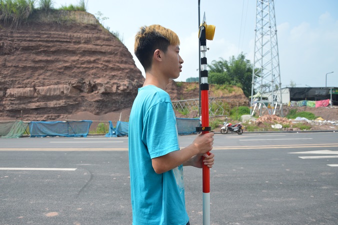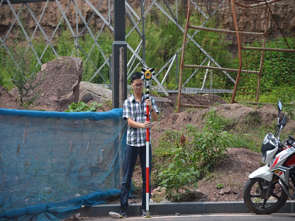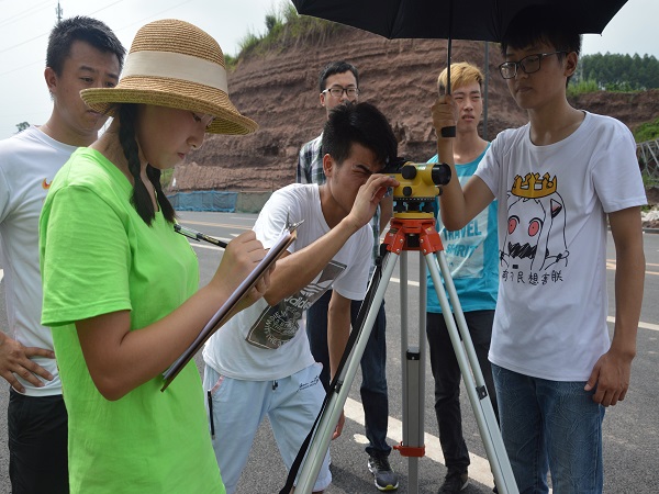 测量过程中,同学们都积极投入实习中。有的负责调整仪器,有的负责选择测点,有的负责记录数据,分工明确、态度认真。同学们对不准确的地方进行多次测量,争取获得更加准确的数据。在采访时其中一名队员说:“大家都很积极,配合的也很默契。从早上七点开始一直测到下午六点才回去休息,虽然测量学习很辛苦,但巩固了我们所学习的知识,让我们对仪器的操作更加熟练,使我们受益匪浅。”