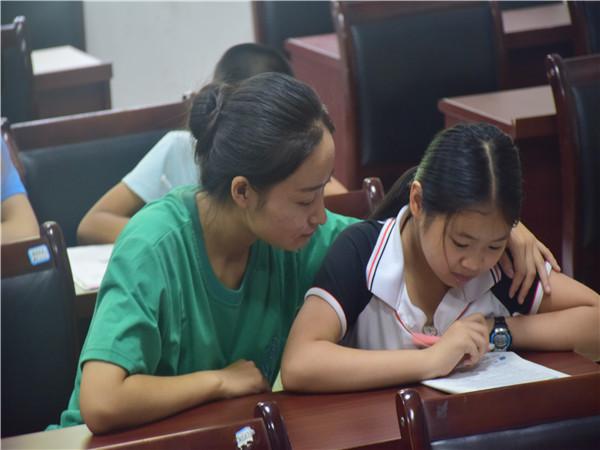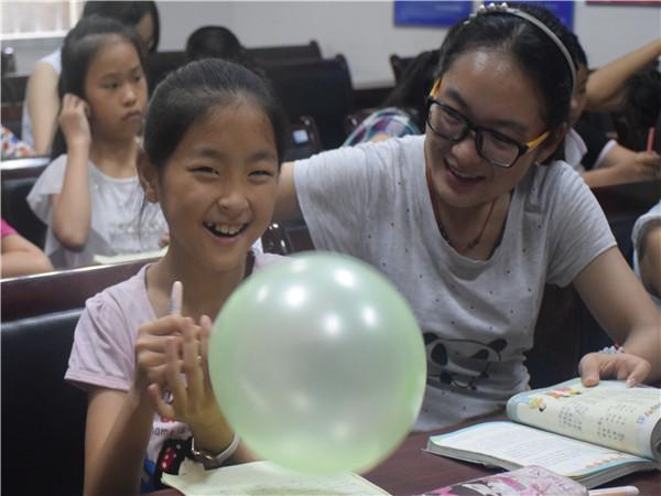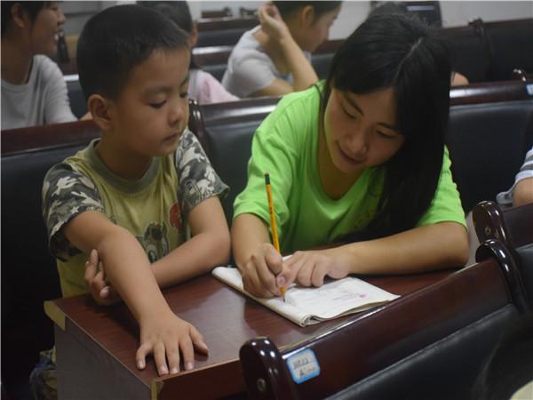 7月13日我队8点40分到达社区,今天又有两个新的孩子加入。首先,我们的志愿者让新同学进行自我介绍以便大家互相认识。随后照例对孩子们进行作业辅导,今天有一道较难的数学思考题考住了班上的大部分同学,我队志愿者赵朝会耐心为他们讲解,为孩子们一一解决疑问。之后,9点20分,进入今天的游戏阶段。我们为孩子们举办了一次游园会。本次游园会共有掷乒乓球、吹乒乓球、不差钱、套环、夹弹珠、水杯接力等活动。孩子们完成活动可得相应奖票一张,凭票换取奖品。期间,水杯接力全员参与,孩子们在欢乐游戏的同时合作能力与协调能力得到了充分的锻炼。11点15分活动结束,每一位孩子的脸上都挂上了开心的笑容,每一位志愿者都乐在为孩子们的服务当中。