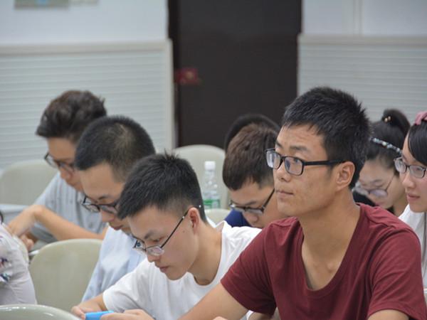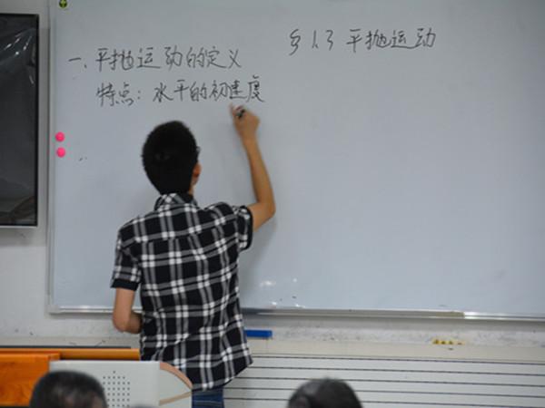7点,试讲正式开始。本次试讲由党总支书记黎昌金主持,首先黎书记讲解试讲规则、时间,分发试讲评价表。接着,试讲人员按照之前抽签决定的顺序逐次上台试讲。试讲期间,授课的五个成员教学风格多样,有的严肃冷静,有的温柔体贴,有的诙谐幽默。讲授的课程主要在高中物理方面,选手们主要讲了牛顿第一定律,平抛运动,超重失重等内容。台下充当学生的同学们则十分配合的提出各种问题,制造各种意外事件,以判断考验台上试讲老师们的应变能力和维持课堂秩序能力。每位试讲人员试讲结束后,队员们都要在评价表上填写听课感受和评价,以便学习试讲中值得肯定的教学方式、改正存在的易被忽视的问题。