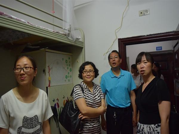 毕业将至,为确保大四毕业生能够顺利离校,6月16日晚9点30分,我院院长胡绍元、党总支书记谭化容、副院长雷厉、副院长李先敏在学工办主任候德苹和2012级辅导员李荇的陪同下,前往宿舍探望大四毕业生。
