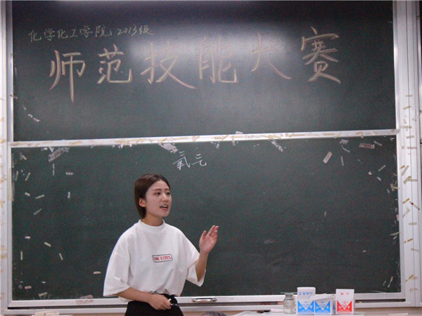 紧接着就迎来了“师范技能大赛”。刘勇副院长讲明了比赛规则即说课3分钟,模拟授课15分钟,评委提问2分钟。邓忠晶同学提出以实验—推理—归纳—总结—巩固为主线的教学方法,建立了观察法,讨论学习法,迁移学习法。杨慧同学则将教学理念融入实际操作中,此方法适合学生理解和接受。路文婧同学声音洪亮,板书工整,课件精美。陈蓉同学以“黑面包事件”为线索,反映浓硫酸特性,鲜明独特。高琪琪同学主要讲解硅的性质,内容多以理论知识为主。吴侠同学从容的讲解了过氧化钠的特性,而且引入相关视频。