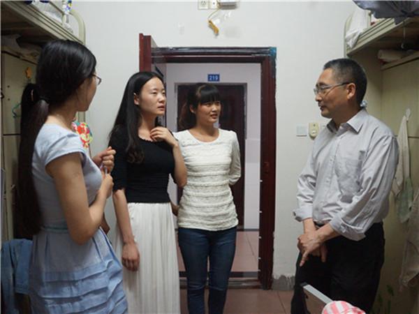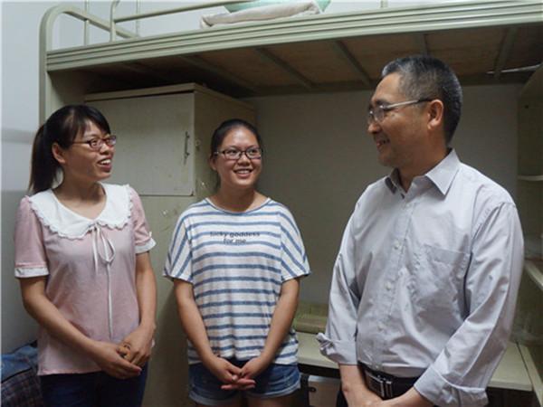 各位领导分别带领一组成员来到学生公寓1幢、12幢、21幢、27幢,深入到每一个寝室看望毕业生们。领导们同毕业生们亲切交谈,大到就业,小到到行李打包、托运及相关手续办理等事情询问毕业生们是否还有需要学院帮助之处;了解他们毕业后的计划安排以及工作去向,同时提出建议,给予指导。其中,陈院长还特别嘱咐毕业生多看经典书籍,坚持长期阅读经典。他说,经典经过了历史大浪淘沙的洗礼,是沉淀下来的精华,与经典对话,你能够让自己沉淀出自己的思想。在交谈中,毕业生们纷纷表达了自己对母校不舍的情感。对于他们的不舍,领导们表示“离别总会有的,母校随时欢迎你们回来。”