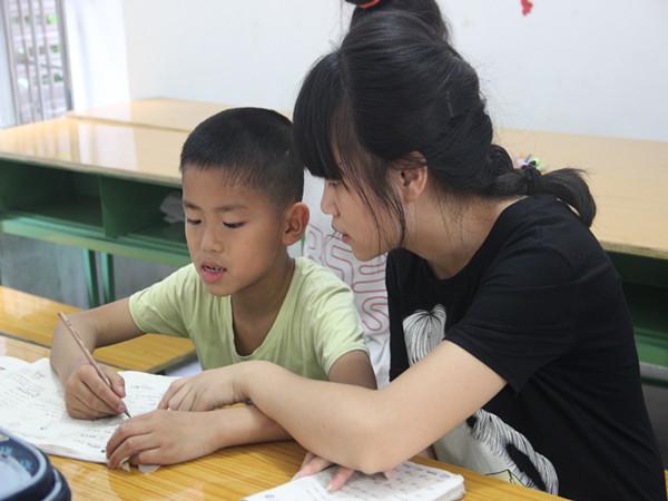 2016年6月7日,本学期最后一次新华路四点半课堂准时开课。志愿者李姝林一如既往早早到了跟小朋友一起学习的小家,等待放学的小朋友们。
