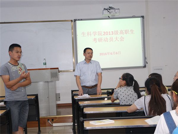炎炎夏日,我院迎来了今年考研的辉煌成绩,为强化我院学生的考研意识,继续壮大我院考研队伍。2016年6月6日下午5:00我院于五教北503举办了一场考研动员大会,此次动员大会由我院党总支副书记黄作喜教授亲临指导,学工办主任杨荣金老师携2013级2、3班全体学生参加此次大会。