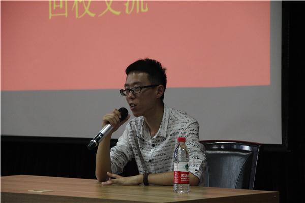 讲座伊始,唐梓译学长以自己的大学经历开始讲起。在提到大学与高中的区别时,他和大家的想法一样,因为不适应环境,所以对学习失去了不少兴趣,有同感的同学纷纷笑着点头。但是,在读了《明朝那些事儿》之后,唐梓译学长的态度却改变了,他开始读相关的作品来充实自己的学习生活。他坦言道:“虽然在大一大二的读书经历只能由“惨烈”来形容,但是接下来从书中学习到的如何观察人、如何考公务员,以及关于美国等国家的营销经济的经历,要有用的很多。”由此,唐梓译学长讲到了坚持,他以大四考研的学长为例,强调坚持与读书的重要性。