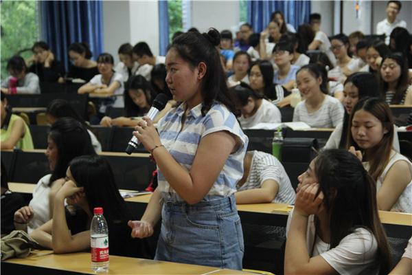 唐梓译学长在面临学生会换届时依然坚持,这是不仅是一种坚持,更是一种敬业态度。在五百强企业的面试中,唐梓译学长便是在简历中因敬业的态度脱颖而出。在说到敬业态度时,唐梓译学长以字母区分为例,引申到如何给学生读《村居》这首诗。不论是缓慢诵读,还是充满感情地诵读,都不适合孩子,其实最适合用来吸引孩子的应该是有节奏感的朗读。接下来的一个小时唐梓译学长以《荷韵》编辑部的筹建工作为切入点,与同学们展开了各个方面的讨论。