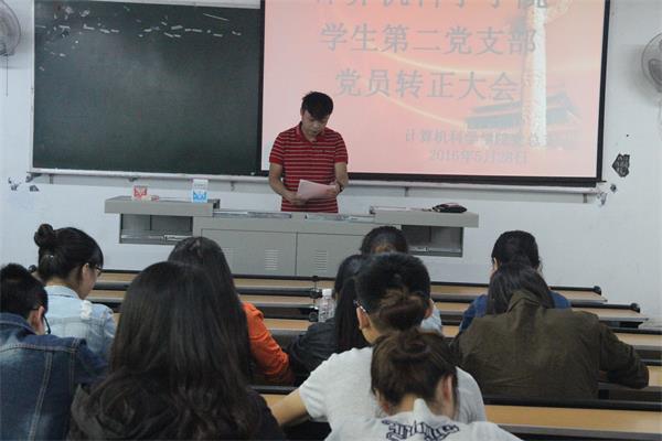 5月28日14:30时,计算机科学学院“党支部转正发展大会”在一教205和一教207成功举行,本次大会主要围绕我院“接受新党员﹑发展预备党员”这一主题而召开,大会由我院学生第一党支部书记李倩倩、学生第二党支部书记吴昊主持。参加此次大会的还有各支部负责人,全体党员和所有转正党员。
