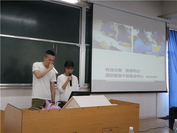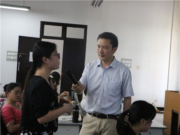 主讲人金老师凭着自己在教育学界积累的经验和丰富的阅历,给同学们讲解了教师教学方法。他首先提到说课应具备的要求和步骤,其次说到说课与讲课的区别。金老师循序渐进,引领同学们置身于高中课堂。他提出高中生物学教学课堂应该涉及导入策略、提问策略、建模技能课例、合作技能、实验技能这几个方面。紧接着让现场两位同学演唱了由《情非得已》改编的歌曲——《爱在细胞深处》,歌词巧妙地将生物学的基本物质与旋律相结合,让同学们对这别具一格的教学方法记忆深刻。