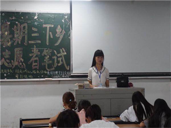 为保证教科学院2016年暑期三下乡活动顺利开展,2015年5月24日,教科学院暑期三下乡志愿者笔试在一教105、401教室进行。实践部副部长高爱玉、张艳红担任本次活动主持人。