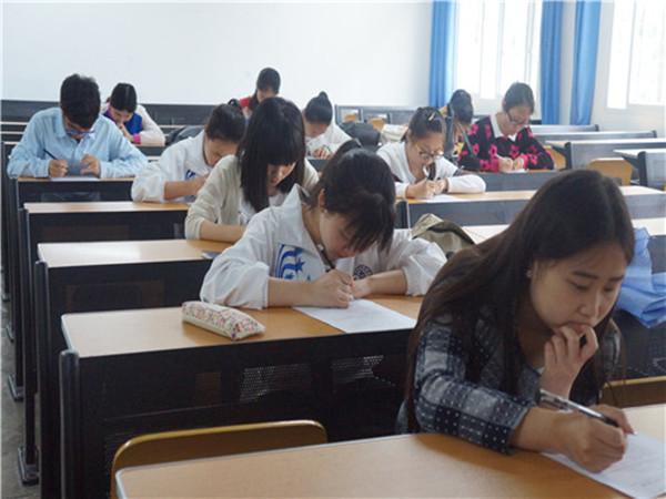 12点30,参赛者都按时来到考场,静待考试。在主持人简要介绍考试规则后,比赛正式开始。本次试卷主要分为单选题、多选题、填空题三个板块,主要考查了同学们作为一名教师需具备的基本教学知识、心理学知识和教育思想知识。面对试卷,同学们都认真审题,谨慎作答。对于熟知的知识,他们信心满满,游刃有余;看见陌生的问题,则严谨思索,努力开动自己的脑筋,发掘头脑中的知识。