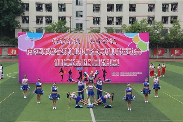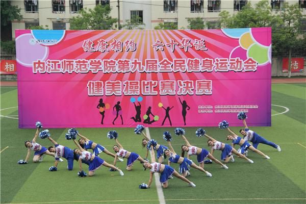 2016年5月23日下午4点30分,内江师范学院第九届全民健身运动会健美操比赛决赛在西区田径场火热开赛。文学院、范长江新闻学院健美操队以8.67的高分获得了乙组啦啦操自编套路冠军。