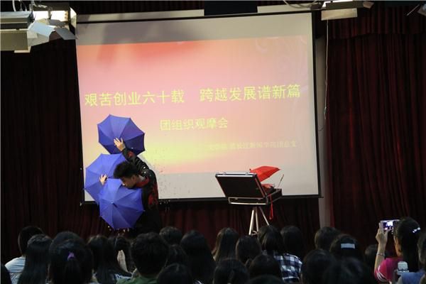 5月26日晚7点,为庆祝内江师范学院60周年校庆,文学院、范长江新闻学院2015级2班在中文楼501举行主题为“艰苦创业60载,跨越发展谱新篇”的团组织观摩会。我院团总支书记康超、15级2班班主任黄全彦到场指导,校团委学生会组织部部分成员及2015级2班、3班的同学观看了本次观摩会。
