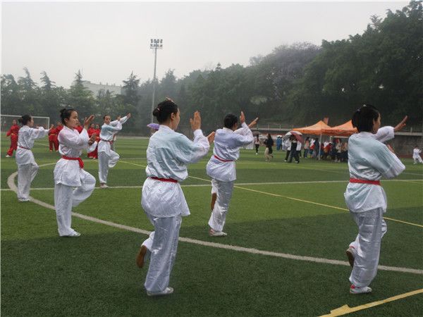 5月14日上午8点,绵绵细雨飘洒在绿茵场上,纵使雨水打湿了头发,淋湿了衣襟,生科健儿们依旧挥着手中的剑,舞着漂亮的双截棍,光着脚丫打着跆拳道……他们以饱满的精神,标准的动作,取得了优异的成绩。在团体赛中,枪术和太极拳勇夺第一;双截棍和长拳获得第三名;跆拳道取得第八名。在个人赛中,熊芹和王大芬分别获女子枪术第一名和第二名;蔡平源、舒展和杨国在男子枪术中分别取得二、三、四名的好成绩;散打项目中,我院参赛选手亦是大显身手,最后由杨益广、范勇和邹恩华取得了男子组第五名、第七名和第八名的良好成绩,李芬、万小菊和卢金会取得了女子组第四、五、六名的好成绩;女子长拳比赛中,我院陈梅、周雯、饶文婷和薛娇荣膺了前四名;双截棍的比拼中,我院女子参赛选手黄兰、龚倩和张俊英毫不逊色于男生,在她们的飒爽英姿下分别取得了第四名、第六名和第八名的成绩。这样的好成绩,让所有人为之鼓掌。