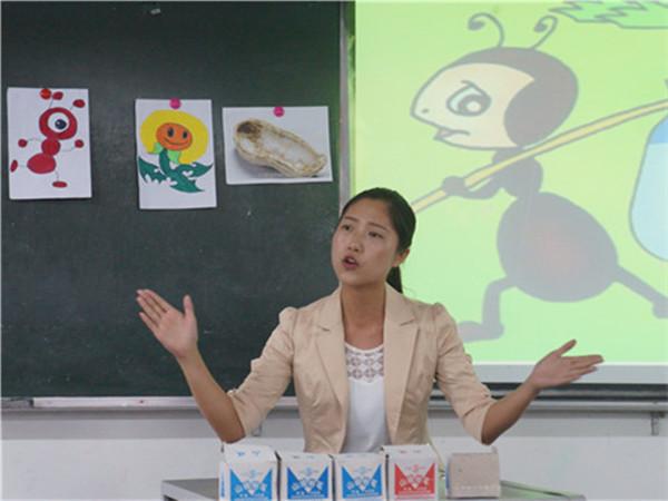 经过初赛的角逐,陈倩、李垚、余正婷等12名同学进入了本次决赛。18点30分,比赛正式开始。首先上台的陈倩凭其独特的开场方式和富有感染力的言语,极大地吸引了同学们的注意力,并让现场气氛极度活跃。随后,陈倩对课文内容进行了细致地分析讲解,面面俱到,又以一系列的有趣活动使整个课堂充满了活力,她精彩的表现赢得了现场热烈的掌声。3号选手曹越借助生动的图片和丰富的肢体语言充分调动起了大家的积极性,带领大家感受小故事的美好。8号选手丁红梅以“猜硬币”游戏开始了她的讲课,课堂中也是以游戏的方式开展,讲课方式新颖独特。李垚作为最后一位选手,她将精致的PPT展示和深情的朗诵相结合,仿佛将一副生机勃勃的春景图展现在大家眼前。选手们的别具一格的讲课方式,流利标准的讲课语言,极具感染力的互动极大地增添了比赛的精彩度,优秀的表现更是将师范专业技能发挥得淋漓尽致。
