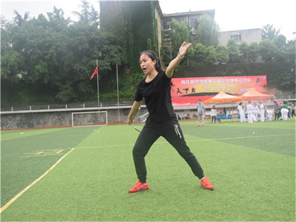 搏击风雨迎明天,教科团队英姿现。本次教科学院团体项目表现良好,展示出教科学子良好的身体素质与文武齐修的思想。赛间冷雨劲风拦,一记重拳武魂展。本届武术比赛团体项目,教科学院在跆拳道、双截棍、南拳、短器械中均斩获头彩。其中教科学院代表队在双截棍项目上的表现尤其夺目,一队、四队、二队包揽第一、二、四名。教科学子不仅团队凝聚力强大,个人武艺也颇为精湛。在本届教科学院参赛的个人项目中,有剑术、南拳赵朝会博得双彩,将两个项目的冠军收入囊中。其次,教科学子杨晨宇也锦上添花,将枪术第一夺下。