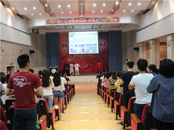 幸福的真谛,到底是被人类冠以生活之本源的糖衣炮弹,还是平凡生活里的温柔梦想?为培养我院学生健康的心理,提高幸福指数,让同学们拥有一片晴朗的心灵天空。2016年5月19日晚7点整,我院很荣幸邀请到张小兰(心馨)博士于第一学术报告厅进行“5.25”心理健康讲座——幸福从“心”开始。莅临本次讲座的嘉宾有我院党总支副书记黄作喜教授、学工办主任杨荣金老师、辅导员李清敏老师、本次讲座的发起者李武老师及我院部分学生。